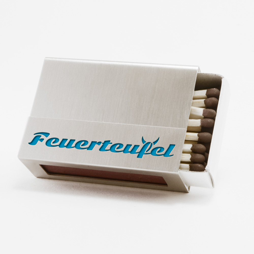 Streichholzschachtel-Hülle „Feuer & Flamme“ Edelstahl