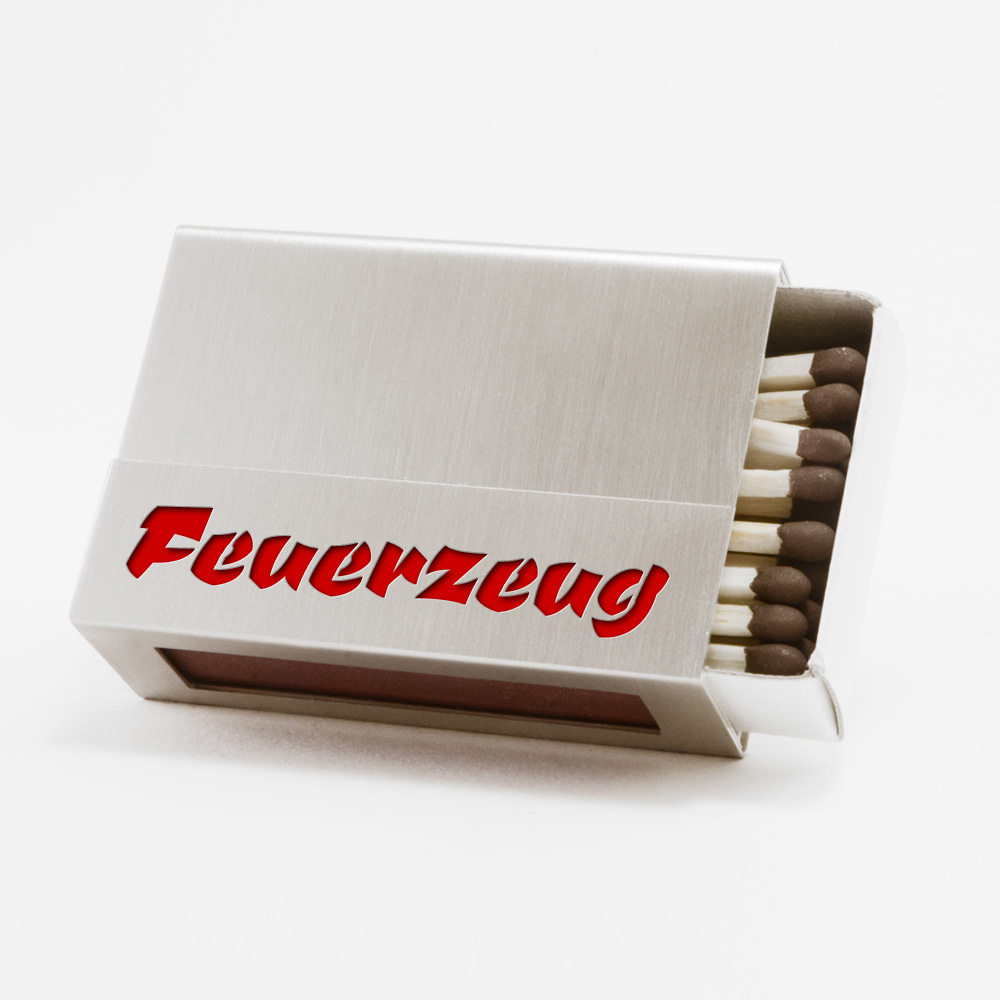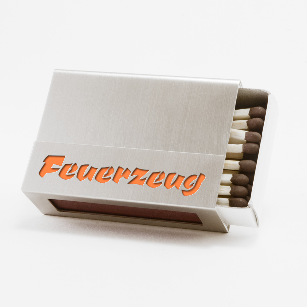Du kannst dich nicht zwischen Feuerzeug und Streihhölzern entscheiden? Wie wäre es dann mit unserer handlichen Streichholzschachtel-Hülle „Feuerzeug“ aus gebürstetem Edelstahl?