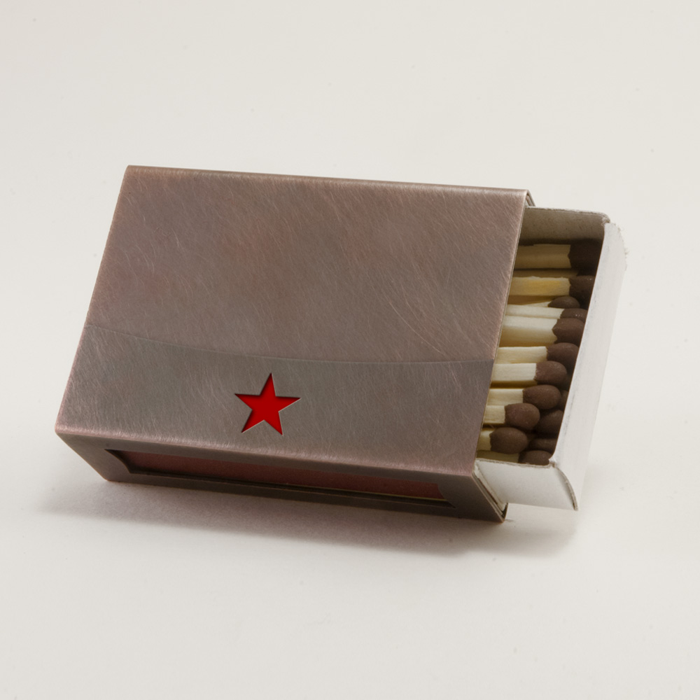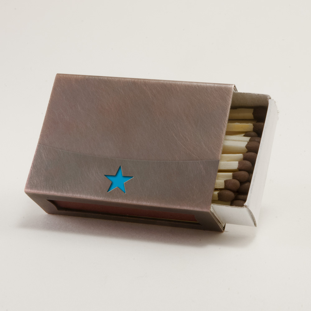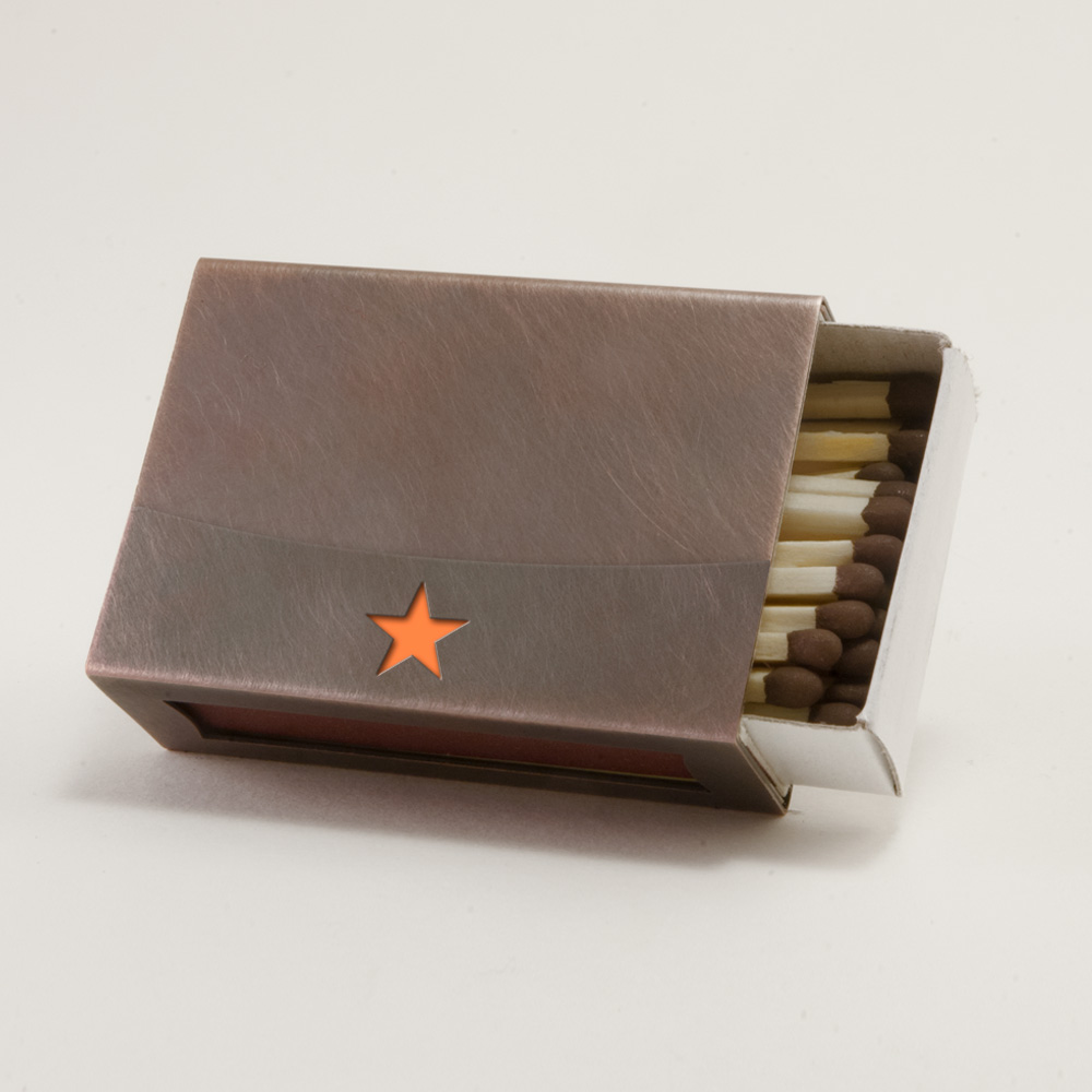 Streichholzschachtel-Hülle mit Stern aus Edelstahl